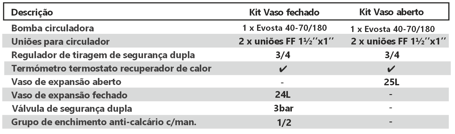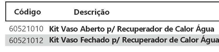 Kit de Vaso aberto e vaso fechado para Recuperadores Àgua-Lenha